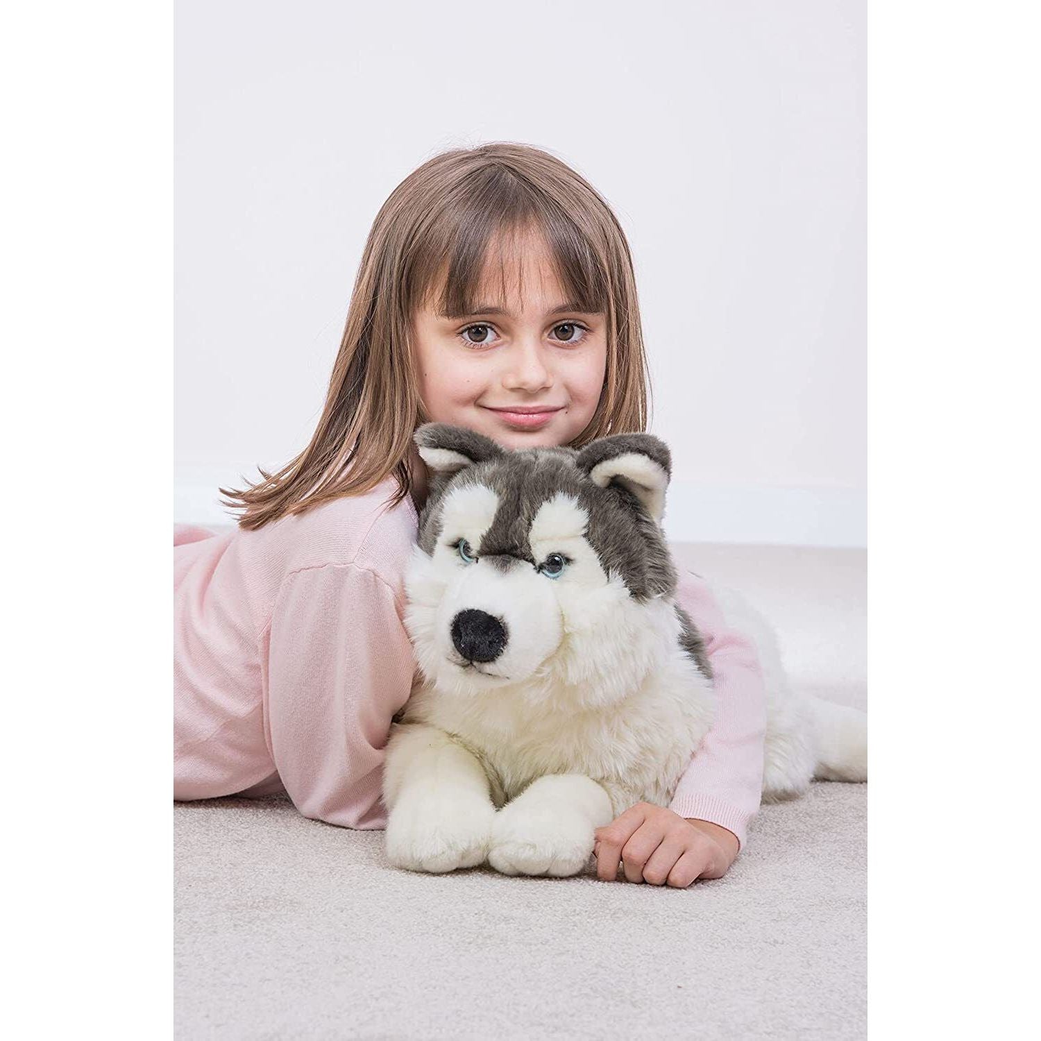 Dieser wunderschöne liegende Husky von Teddy Hermann wurde aus hochwertigem Plüsch hergestellt und mit softem recyceltem Polyester gefüllt. Das Plüschtier wurde mit Liebe zum Detail gestaltet und eignet sich hervorragend zum phantasievollen Spielen. Das Produkt ist für Kinder ab 0 Jahren geeignet.